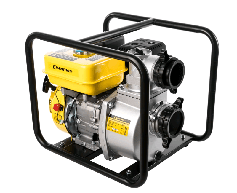 Мотопомпа Champion GP80 оснащена мотором внутреннего сгорания, который позволяет перекачивать 1000 литров воды в минуту. Мотор одноцилиндровый, четырехтактный. Есть хорошее воздушное охлаждение. Предусмотрен самовсасывающий водяной насос. Он отличается повышенной надежностью.