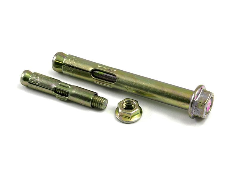 Принцип работы: при закручивании гайки помещенного в отверстие анкерного болта его шпилька втягивается в отверстие во втулке, разжимая своим конусным концом лепестки. Высокую надежность фиксации такого крепежа в предварительно подготовленном отверстии обеспечивается и тем, что его распорная втулка изготовлена методом литья и не имеет на своей поверхности сварных швов, ослабляющих ее конструкцию. Чтобы не допустить углубления гайки в отверстие, на резьбовую часть анкерного болта обязательно надевают стопорную шайбу.
