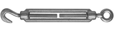 Рабочие нагрузки талрепов рассчитываются вдоль своей оси, боковых нагрузок на соединение быть не должно. Изготавливаются из углеродистой стали, покрытие - оцинкованный. Также материалом изготовления может служить нержавеющая сталь.