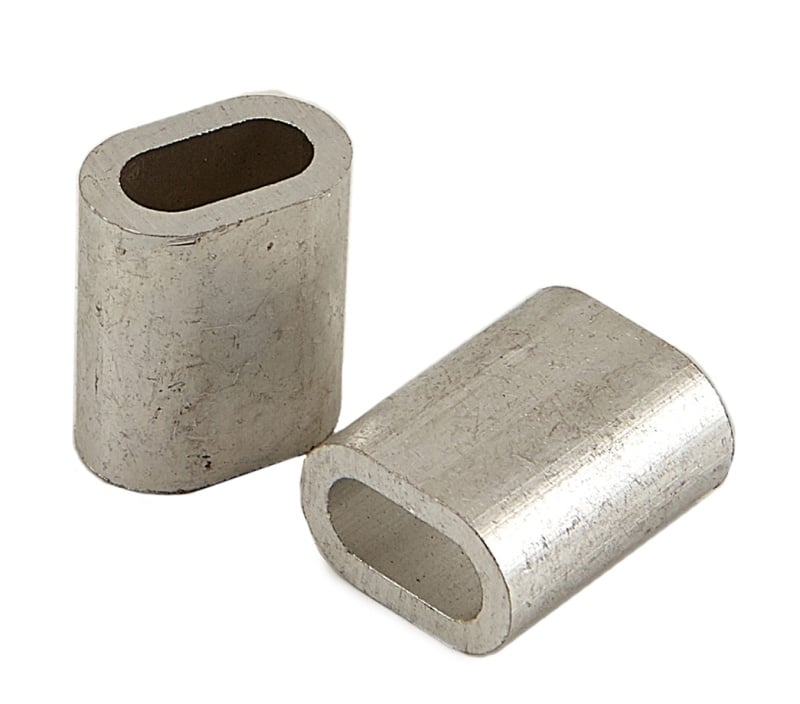 Представляет собой алюминиевый сплющенный полый цилиндр. Рекомендуется для соединения тросов между собой, а также для изготовления петель на концах троса. Для опрессовки канатов зажимами DIN 3093 необходимы специальные клещи.