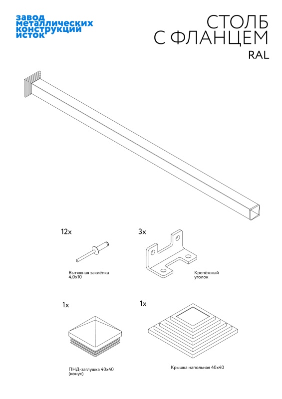 в комплекте с крышкой ПНД для проф трубы и подпятником, ушки 3 шт, заклепки 12шт.
