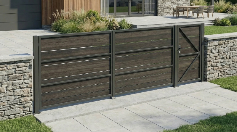 Представьте плавное скольжение ворот, словно они парят над землей... Наши откатные ворота – это гармония инженерной мысли и эстетики. Глубокий цвет порошкового покрытия, ровные линии профилированного листа и бесшумный ход создают ощущение безупречного порядка на вашей территории.