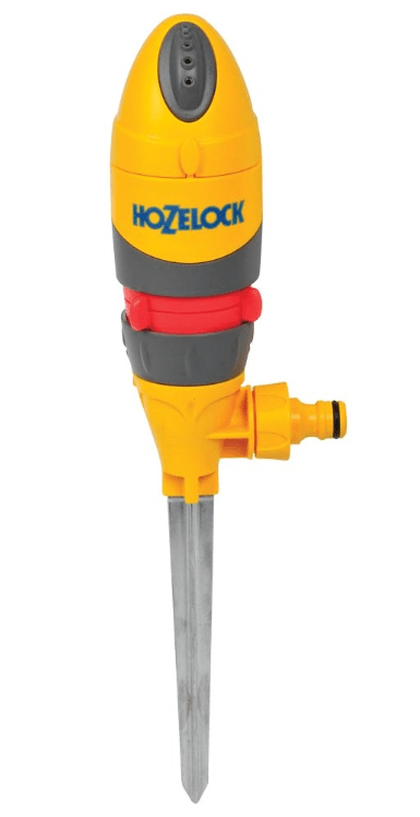 Устойчивость устройства на газоне обеспечивается благодаря твердому металлическому колышку.