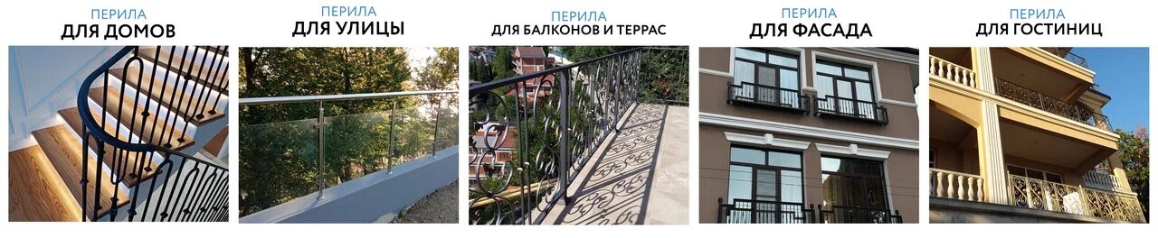 В жилых зданиях предпочтение отдают более изящным и декоративным конструкциям. Для производственных или общественных помещений покупают практичные, прочные варианты с акцентом на безопасность и устойчивость к износу. Следует обратить внимание на материал изготовления: перила могут быть выполнены из стали (в том числе нержавеющей), алюминия, кованого железа, также есть комбинированные решения.