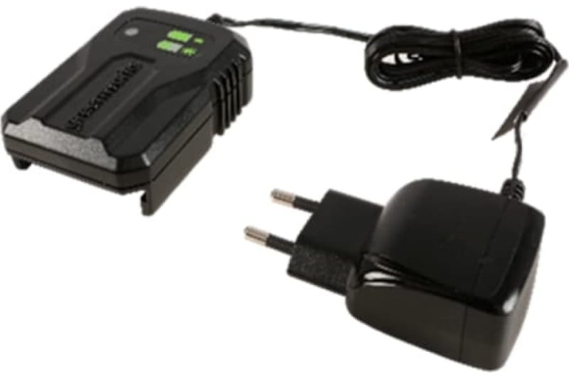 Зарядка оснащена специальным защитным чипом от перезаряда и перегрева. На корпусе устройство располагается индикатор зарядки аккумулятора. Питание зарядки от сети 230 вольт переменного тока 50-60 Гц. Максимальный ток заряда 2 А. Зарядное устройство заряжает 2 Ач батарею за 60 мин, 4Ач — 120 мин.