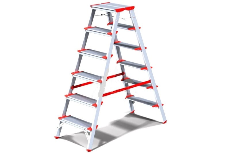 Ориентация ступеней на обе стороны позволяет работать, не переставляя стремянку и тем самым экономя время;