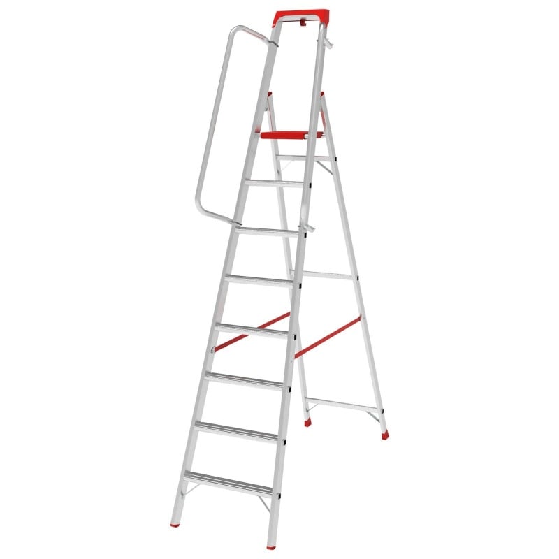 Опорные башмаки из высокопрочного пластика на заклёпках предотвращают скольжение стремянки и защищают пол от повреждений.
