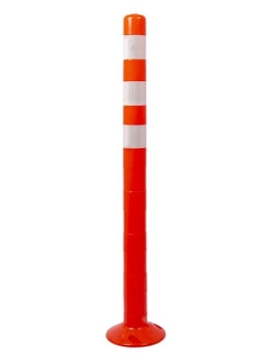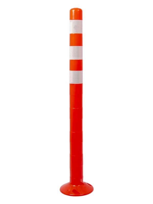 На поверхность столба наклеены три светоотражающие наклейки белого цвета