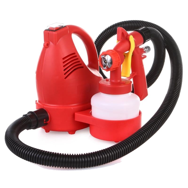 Электродвигатель мощностью 600 Вт позволяет распылять густые вязкие вещества. Материал подаётся на поверхность с низким давлением, всего 0,1 — 0,2 бара, что увеличивает процент переноса краски почти до 100%. В отличие от пневматических пульверизаторов, электрические краскораспылители компактны, не нуждаются в дополнительном оборудовании и сложной схеме обслуживания.