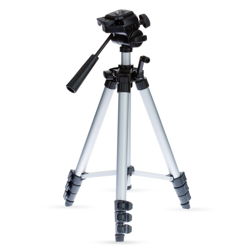 Данный штатив оснащен зажимами и выдвижной частью, которые позволяют зафиксировать его на нужной высоте.