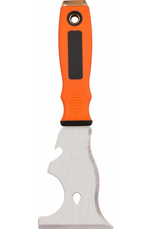 Полотно шпателя выполнено из качественной нержавеющей стали, что обеспечивает прочность и долговечность. Эргономичная двухкомпонентная рукоятка не скользит в руках и удобна при работе.