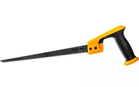 Ножовка отличается узким заостренным полотном для выполнения фигурных пропилов в листовых материалах