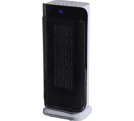Тепловентилятор данной модели имеет стильный и эргономичный дизайн. Он соответствует высоким требованиям пожарной безопасности, поскольку имеет датчик от опрокидывания и перегрева. Первый датчик автоматически выключает прибор при его падении, а второй – при достижении высокой температуры внутри. Подобное может произойти при засорении проходов для воздушных потоков пылью. Чтобы этого не допустить, необходимо регулярно чистить устройство, но использовать абразивные средства запрещено. Тепловентилятор оснащен дисплеем, таймером и функцией поворота.