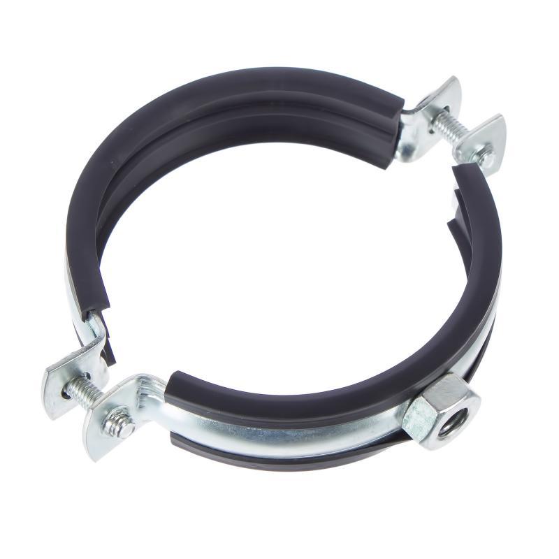 Оцинкованные хомуты для крепления воздуховодов с резиновым профилем имеют специальную резиновую подкладку и этим отличаются от обычных хомутов. Резиновый профиль позволяет не только уменьшить вибрацию, которая передается от воздуховода на крепеж, но и значительно снизить общий уровень шума в помещении, где проходит вентиляционная трасса. Резиновый профиль надежно закреплен в хомуте и не выпадает при монтаже и подвижках воздуховода во время дальнейшей эксплуатации.