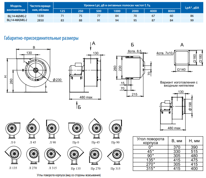 Одной из отличительных особенностей оборудования является низкий уровень рабочего шума. Для вентилятора ВЦ 14-46-2,0 0,37/1500 звуковое давление, передаваемое в окружающую, среду составляет не более 86дБА.