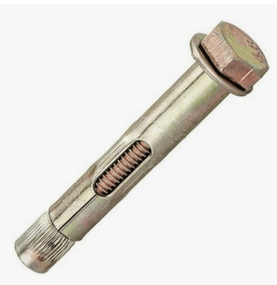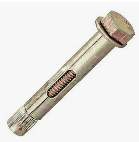Принцип работы: при закручивании гайки помещенного в отверстие анкерного болта его шпилька втягивается в отверстие во втулке, разжимая своим конусным концом лепестки. Высокую надежность фиксации такого крепежа в предварительно подготовленном отверстии обеспечивается и тем, что его распорная втулка изготовлена методом литья и не имеет на своей поверхности сварных швов, ослабляющих ее конструкцию. Чтобы не допустить углубления гайки в отверстие, на резьбовую часть анкерного болта обязательно надевают стопорную шайбу.
