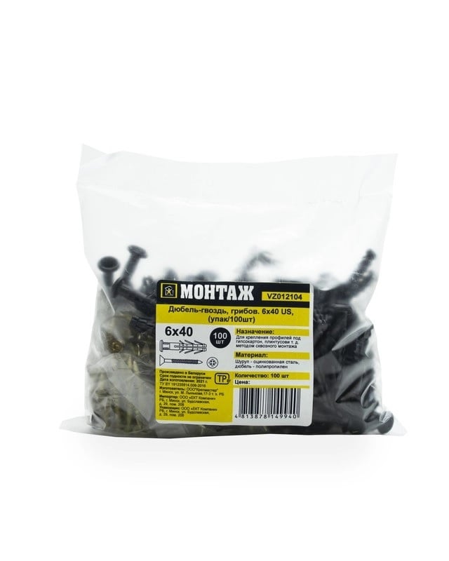 • Товар поставляется в разобранном виде, что обеГвоздь-грибок. Такой вид пластиковой части крепежа имеет скругленное окончание, которое напоминает гриб. Используется в тех случаях, когда конструкция требует повышенной прижимной силы. Благодаря большой толщине манжеты, давление распределяется равномерно и не приводит к разрушению крепежа или прижимаемого материала.