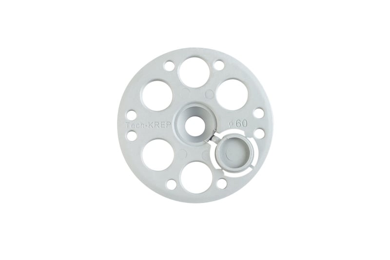 Крепежная система состоит из распорного дюбеля диаметром 10 мм с удерживающим диском диаметром 60мм.