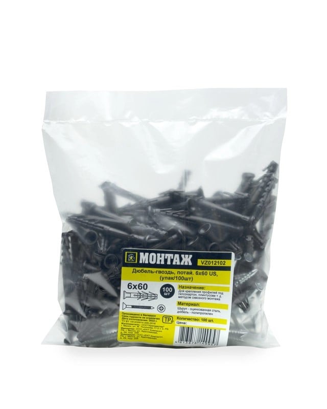 Он состоит из пластиковой гильзы черного цвета, обладающей конструктивными элементами в виде "усов", и шурупа с ударной резьбой.