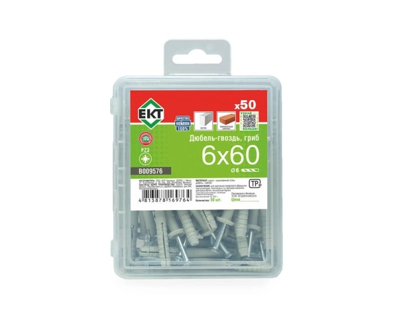 Гвоздь-грибок. Такой вид пластиковой части крепежа имеет скругленное окончание, которое напоминает гриб. Используется в тех случаях, когда конструкция требует повышенной прижимной силы. Благодаря большой толщине манжеты, давление распределяется равномерно и не приводит к разрушению крепежа или прижимаемого материала.