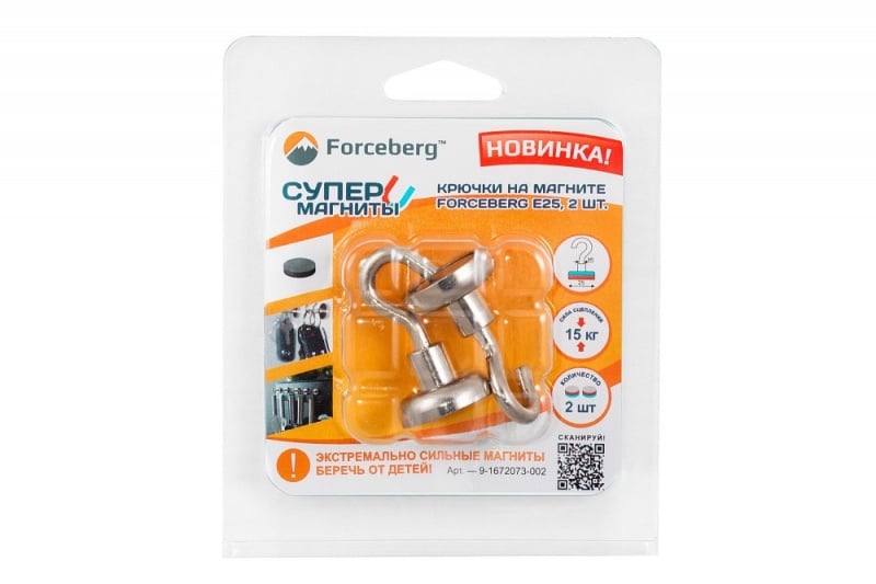 Диаметр основания 25 мм, высота основания 17 мм, высота магнита с ввинченным крючком 45 мм. В упаковке 2 крючка.