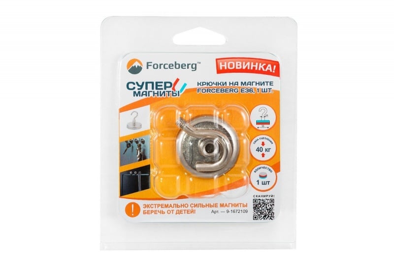 Крепление представляет собой супермощный неодимовый магнит в стальном корпусе с резьбовым отверстием М6. Металлическая чаша у магнитного крепления с крючком сдерживает рассеивание магнитного поля. Оно направляется строго на ту сторону, которая обеспечивает сцепление с ровной стальной поверхностью. Крючок М6 вкручивается в корпус.