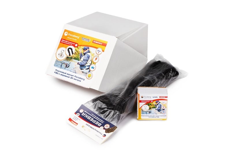 В комплекте к магниту – высокопрочная и непромокаемая веревка с сердечником и полипропиленовой оплеткой. Диаметр веревки – 4 мм, длина – 30 м. Предельная нагрузка на разрыв – 250 кг.