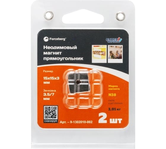 Диаметр внутреннего отверстия – 3,5 мм, диаметр отверстия под потай – 7 мм. Сила сцепления в идеальных условиях составляет 3 кг. Неодимовые магниты очень медленно размагничиваются: за 10 лет мощность магнита падает примерно на 1%. Магнитные свойства неодима N38 сохраняются при температуре до 80°С.