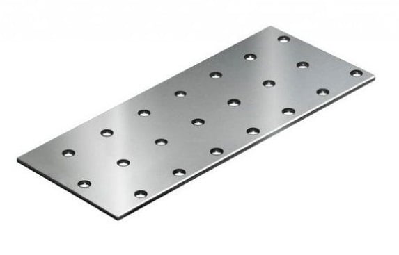 Элементы, соединяемые пластиной, всегда лежат в одной плоскости. Перфорированная крепежная пластина используется для сращивания конструктивных элементов из обрезного пиломатериала, а также для обеспечения надежной фиксации двух или нескольких элементов стропильно-подстропильной системы. Пластина крепится без дополнительной врезки, при помощи строительных и ершенных гвоздей, саморезов, шурупов, а также анкеров, болтов и шпилек.