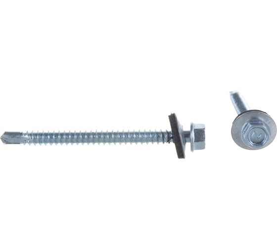Саморез имеет шестигранную головку, полную резьбу по всей длине стержня, наконечник в виде бура и шайбу с герметизирующей EPDM-прокладкой.