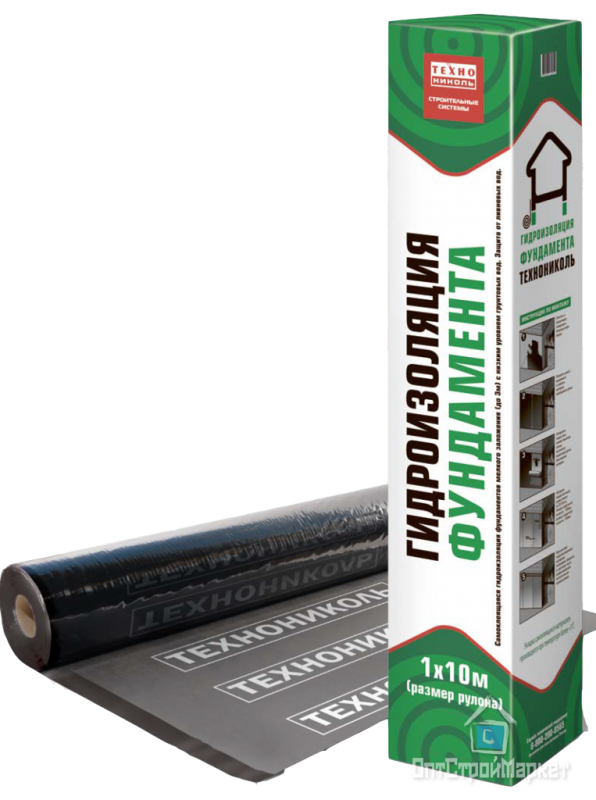 Монтаж производится на основание, загрунтованное битумным праймером. Рулон раскатывается сверху вниз, верхний край закрепляется металлической краевой рейкой. Применяется для гидроизоляции фундаментов мелкого заложения (до 3м). Защита от ливневых вод. При низком уровне грунтовых вод материал укладывается в один слой, при высоком (глубина залегания грунтовых вод 2 м и меньше) – в два слоя.