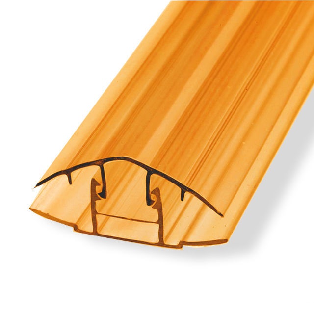 Разъемный стыковочный профиль состоит из базы-основания и специальной крышки, которые соединяются друг с другом при помощи особого «замка». Такой профиль более удобен в работе, чем неразъемный. Сначала к основанию крепится база, а затем – верхняя крышка. Профиль со стороны сечения представляет собой перевернутую букву Н. Между двумя пластиковыми планками, соединенными посередине, образуются две полости, в которых и крепятся листы материала. У профиля есть специальная камера, где просверливаются отверстия для крепежных элементов – саморезов, болтов.