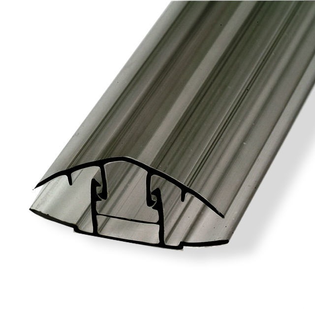 Разъемный стыковочный профиль состоит из базы-основания и специальной крышки, которые соединяются друг с другом при помощи особого «замка». Такой профиль более удобен в работе, чем неразъемный. Сначала к основанию крепится база, а затем – верхняя крышка. Профиль со стороны сечения представляет собой перевернутую букву Н. Между двумя пластиковыми планками, соединенными посередине, образуются две полости, в которых и крепятся листы материала. У профиля есть специальная камера, где просверливаются отверстия для крепежных элементов – саморезов, болтов.