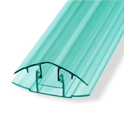Разъемный стыковочный профиль состоит из базы-основания и специальной крышки, которые соединяются друг с другом при помощи особого «замка». Такой профиль более удобен в работе, чем неразъемный. Сначала к основанию крепится база, а затем – верхняя крышка. Профиль со стороны сечения представляет собой перевернутую букву Н. Между двумя пластиковыми планками, соединенными посередине, образуются две полости, в которых и крепятся листы материала. У профиля есть специальная камера, где просверливаются отверстия для крепежных элементов – саморезов, болтов.