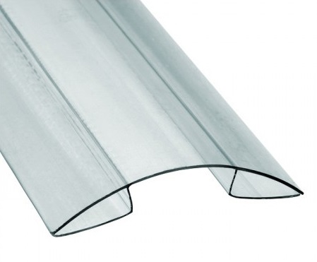 Коньковый поликарбонатный профиль фактически состоит из схожих элементов торцевых профилей из поликарбоната соединенных между собой гибким сочленением, которое позволяет менять угол сочленения. Коньковый профиль позволяет решить проблему герметизации конька при монтаже двухскатных конструкций.