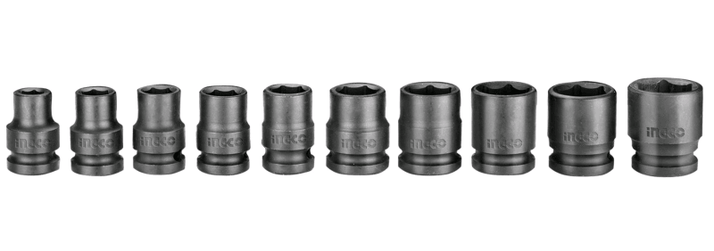 В наборе 10 головок высотой 40 мм, размером:10, 12, 13, 14, 15, 17, 19, 21, 22, 24 мм;
