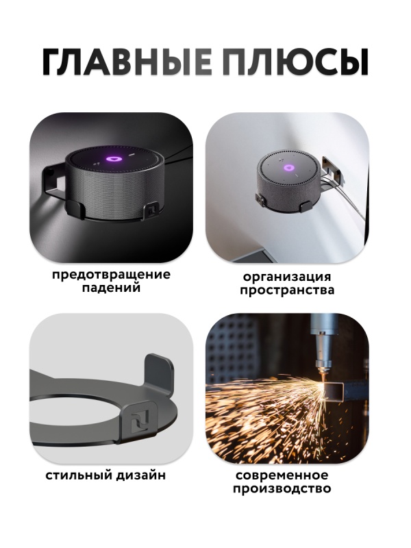 Элегантный чёрный держатель выполнен из прочного металла, обеспечивая долговечность и надёжную фиксацию даже крупногабаритных колонок. Компактная форма позволяет легко разместить устройство на столе, полке или стенде, освобождая рабочее место от хаоса проводов.