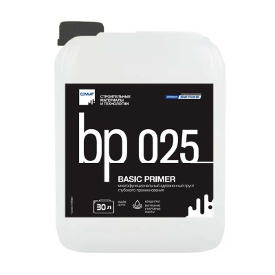 Усиливает прочность сцепления материалов с основой. interior-exterior.Универсальный проникающий грунт для обработки стен, полов и потолков. Нормализует и укрепляет основу, страняет неблагоприятное воздействие от поверхностных загрязнений. BP 025 значительно усиливает прочность сцепления материалов с основой и между собой.