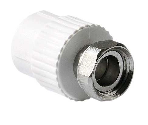 Латунная закладная имеет внутренние выступы и проточки, препятствующие ей проворачиванию относительно полипропиленового корпуса и разрушению детали из-за различных коэффициентов линейного расширения полипропилена и латуни.