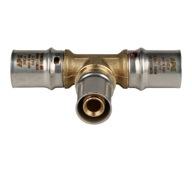 Фитинг оснащен уплотнительными кольцами из EPDM и нержавеющими стальными давящими гильзами с тремя окнами для осмотра.