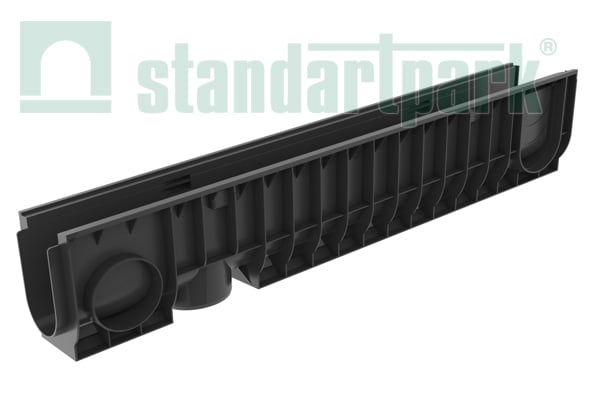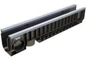 На края пластикового лотка могут быть установлены П-образные стальные насадки, которые предназначены для его усиления (dn100 h200 усиленный).