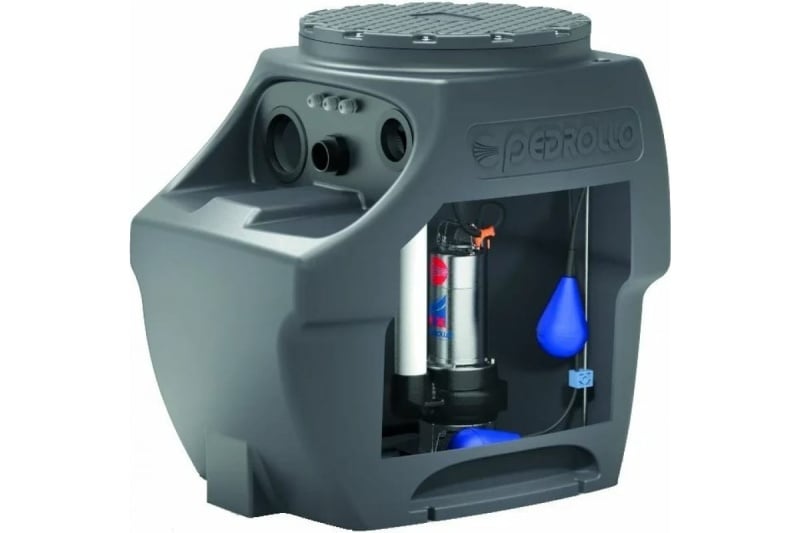 Станция оснащена датчиком контроля уровня жидкости. По мере необходимости он передает сигнал включения/выключения насоса. Обратный ход сточных вод невозможен благодаря наличию клапана.
