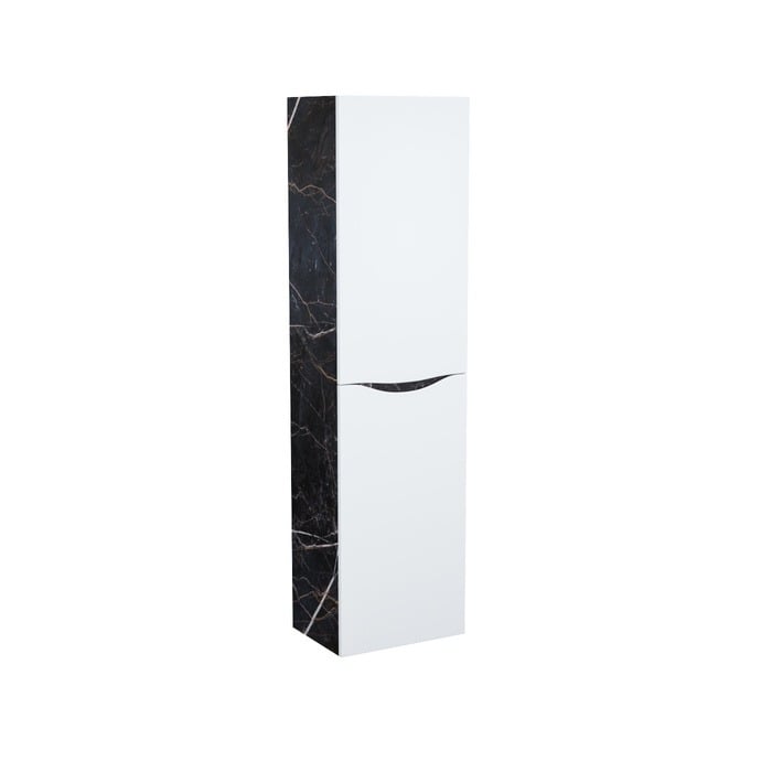 Подвесная конструкция пенала делает ее воздушной и упрощает процесс уборки в ванной.