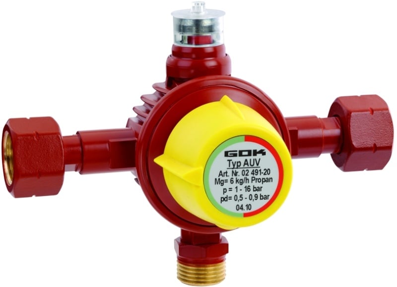 Конструктивно автоматический переключающий клапан состоит из 2-х регуляторов давления, размещенных в одном корпусе, и рукоятки переключения стороны отбора газа. Индикация стороны отбора газа визуальная: зеленый цвет - рабочая сторона, красный цвет - резервная сторона. Опционально может устанавливаться дистанционная индикация.