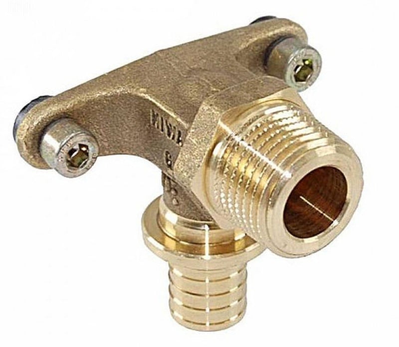 на кронштейнах из программы REHAU. Короткий нарезной патрубок.
