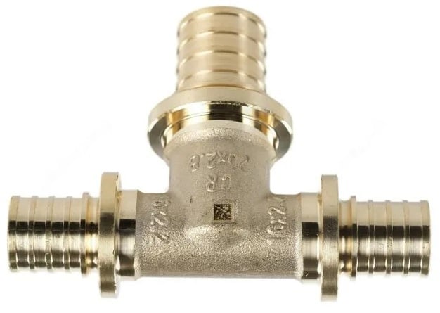 Тройник изготовлен из коррозионностойкой DZR латунь золотого цвета.