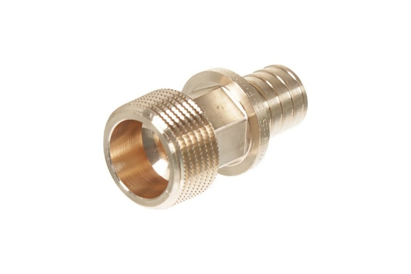 Переходник с наружной резьбой соединяется с помощью инструмента, герметизирует место стыка 2 секций труб.