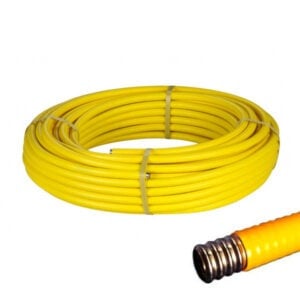 диаметром 20 мм в полиэтиленовой оплетке желтого цвета производится из высоколегированной полированной нержавеющей стали марки SUS304 методом сварки T.I.G. в инертном газе, что полностью предотвращает возможность коррозии в области сварочного шва. Труба гофрированная нержавеющая 20 мм перед нанесением полимерного покрытия подвергается термической обработке (отжигу), в результате которого она приобретает пластичность и уникальную гибкость. Покрытая полиэтиленом гофротруба из нержавеющей стали с внутренним проходным диаметром 20 мм имеет минимальный радиус изгиба