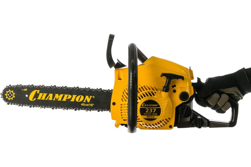 Тормоз цепи останавливает ее вращение в случае отсткока, снижая вероятность травмы во время работы.