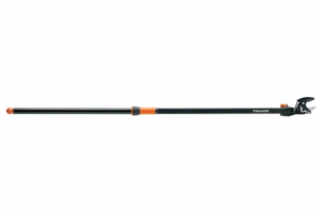 Сучкорез универсального назначения Fiskars также используется для прореживания низкорасположенных веток разнообразных кустарников, не наклоняясь при этом всем корпусом. Крючкообразная форма нижнего лезвия позволяет надежно удерживать ветку при срезании. Управление режущим механизмом осуществляется фирменной ручкой ярко-оранжевого цвета. Лезвия сучкореза выполнены из высокотехнологического сплава и обработаны специальным антифрикционным покрытием, благодаря чему значительно понижается уровень трения при эксплуатации. Основа сучкореза вып